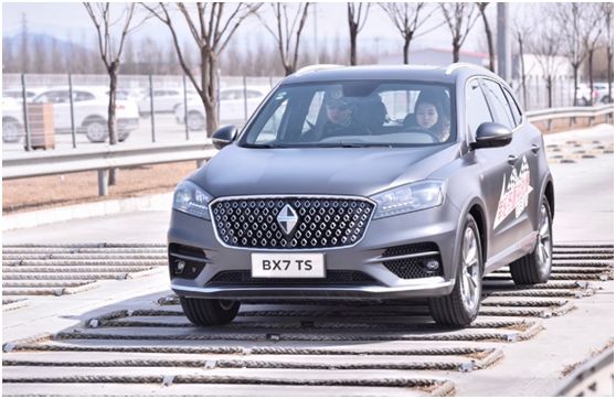 “单轮脱困”让我们看到了宝沃4MAX智能全时四驱系统的强劲实力,接下来,我们便来到了宝沃工厂的试车封闭小型环形道路,来体验下宝沃BX7 TS和宝沃BX7的动态实力。我选择了具有运动性能的宝沃BX7 TS车型来作为体验项目。